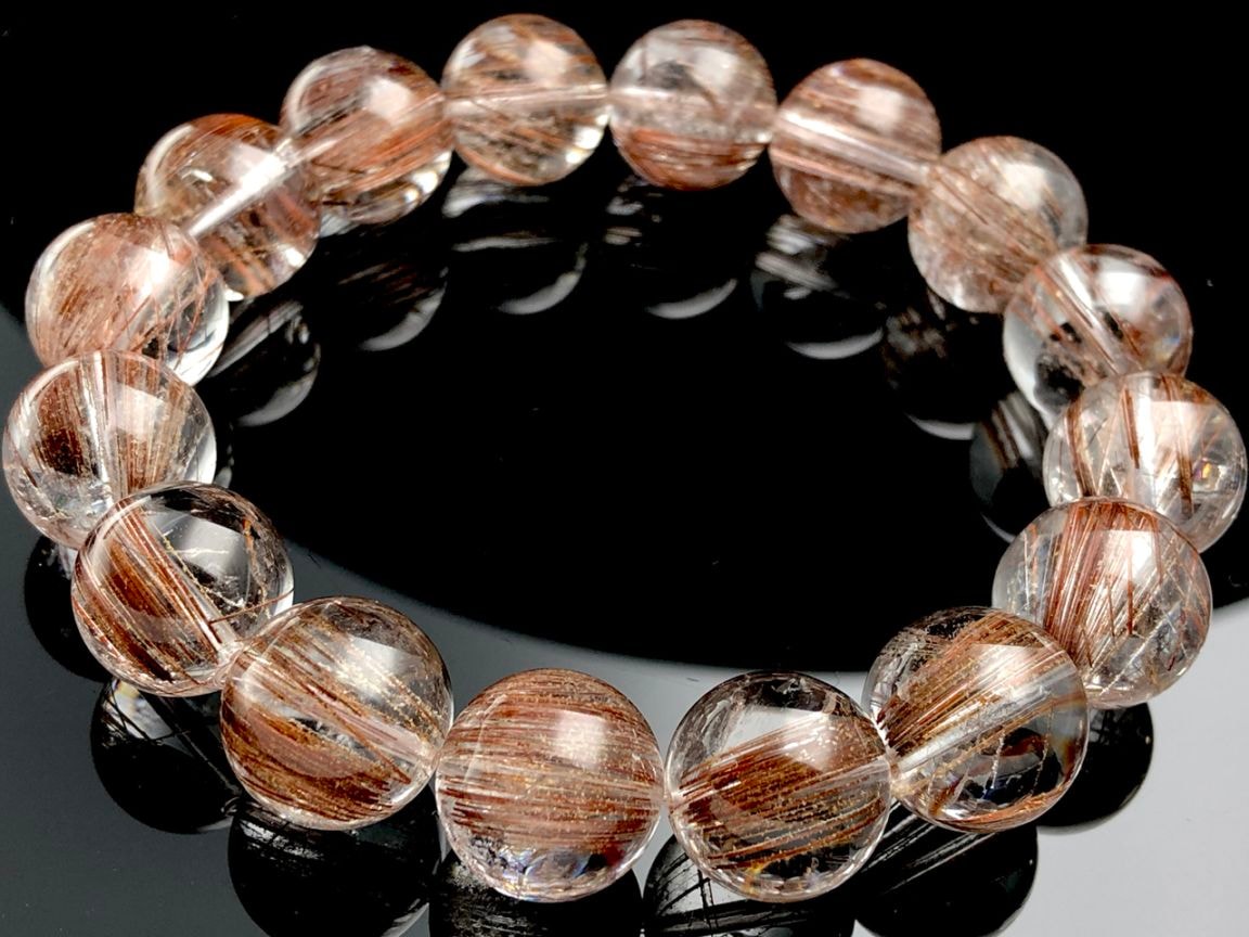 【1点物】透明感★金銭を呼び込む金運の石★天然石ブレスレット/コッパーレッドルチルクォーツ(金針水晶/太針水晶)/ラウンド/約13...