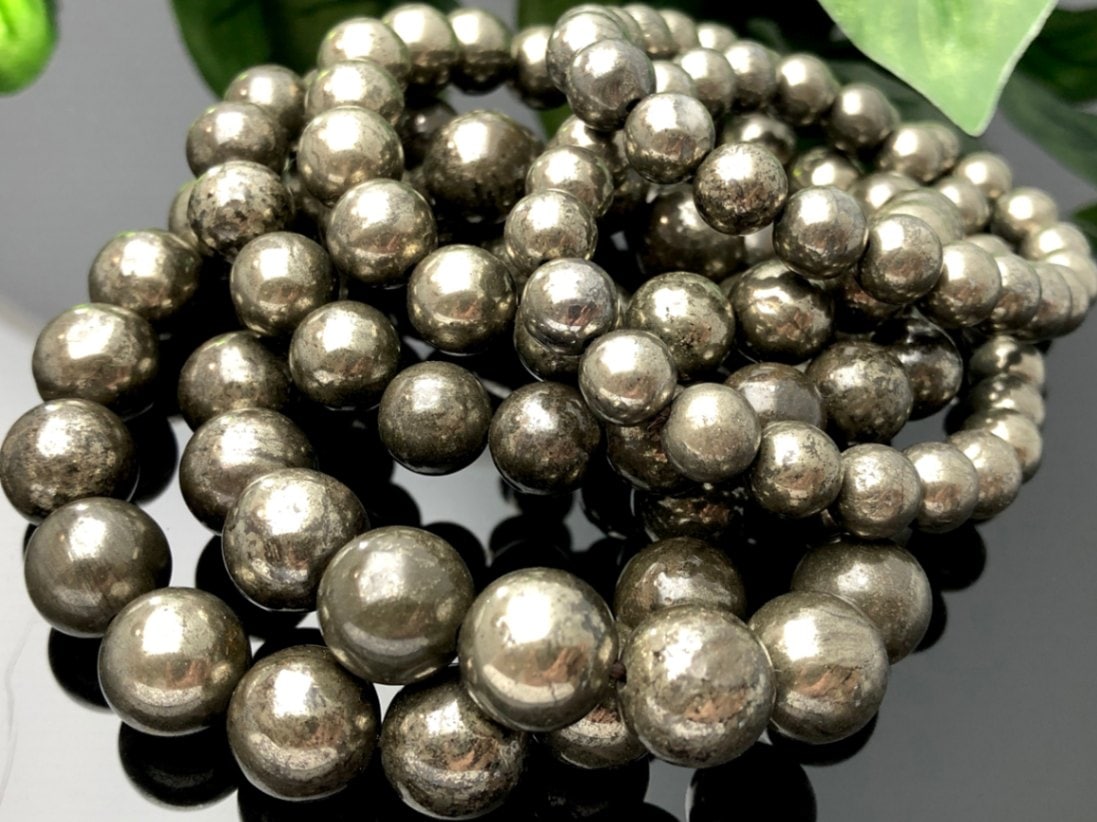 重厚感のあるメタリックカラー★天然石ブレスレット/パイライト(黄鉄鉱/Pyrite)/ラウンド/約10mm/1個【天然石/パワース...
