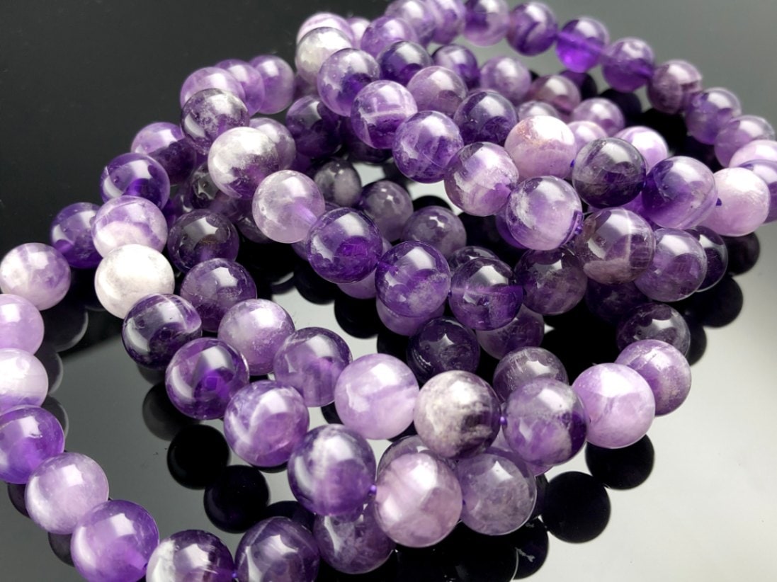 定番石★艶々光沢★ブラジル産★天然石ブレスレット/ゼブラアメジスト(Amethyst/紫水晶/アメシスト)/ラウンド/約10mm/...
