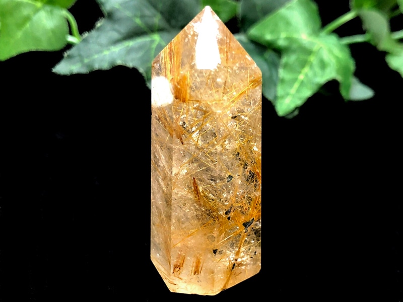 【1点物!】金運・財運の石★天然原石/太陽放射ゴールドルチル六角柱ポイント(金紅石入り水晶/Rutilelated quartz)...