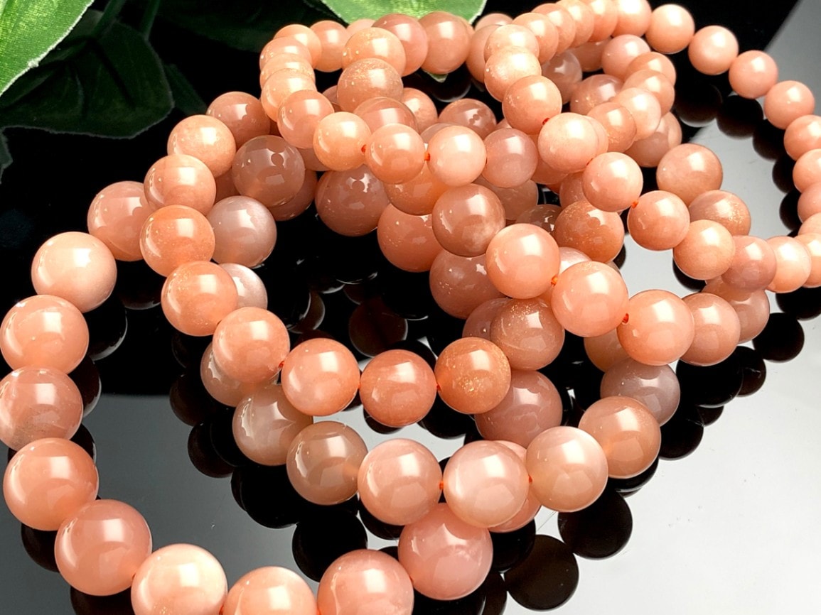 優しいピンクオレンジカラー★天然石ブレスレット/ピンクムーンストーン(moon stone/月長石)/ラウンド/約11mm/1本/...