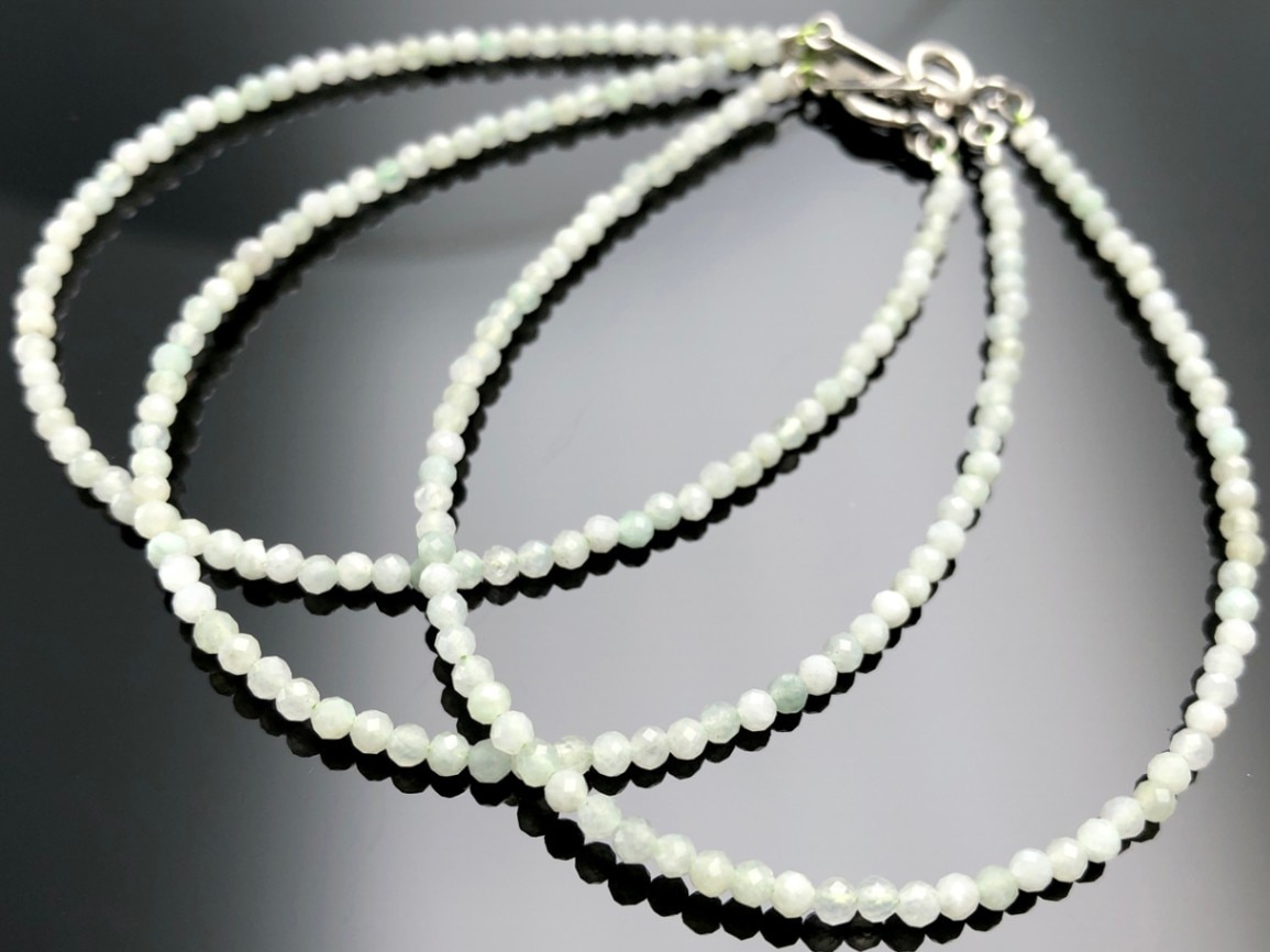 ミャンマー産★SV925製/天然石ブレスレット/翡翠(ひすい・ヒスイ・ジェイド・jade)/ファセットカット/約2mm/1本【天然...
