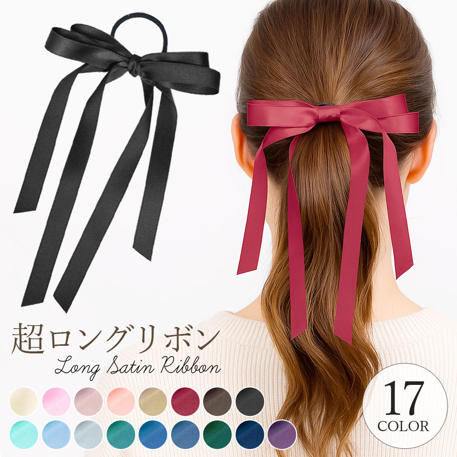 ヘアゴム ロングリボン ヘアポニー リボン 大人 レディース ヘアアクセサリー 春 ハーフアップ 【送料pt100】