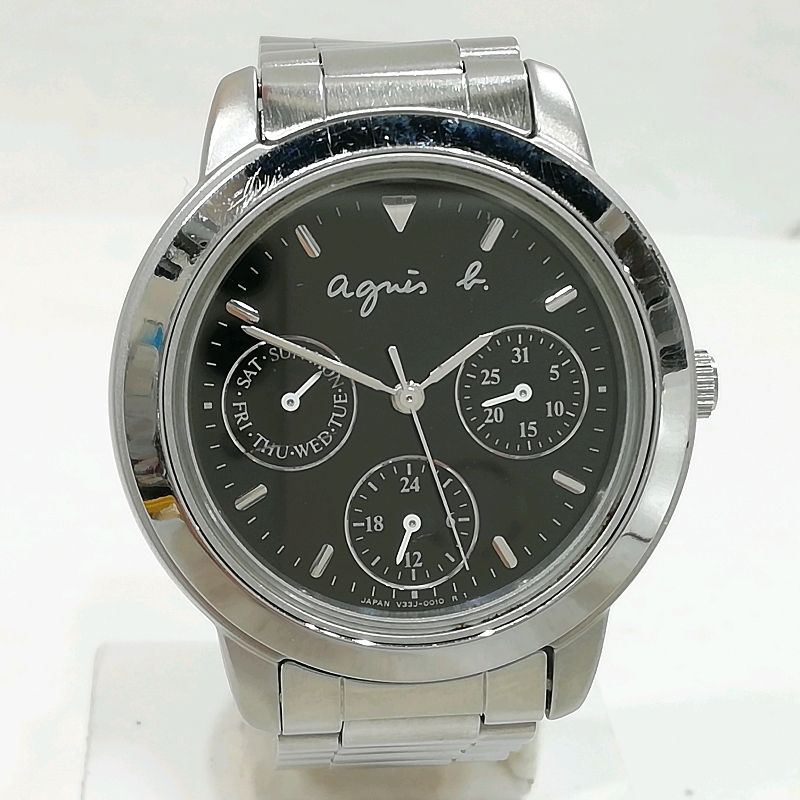 【中古】【送料無料】アニエスベー レディース クォーツ マルチファンクション V33J-0010★風防にキズ※メール便でお送りしま...