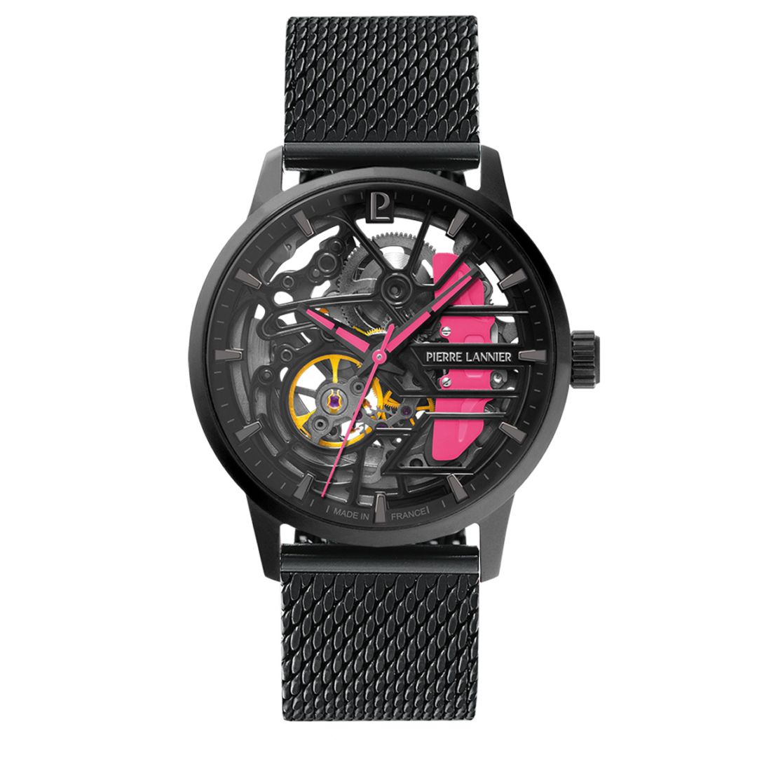 PADDOCK パドック 39mm 自動巻き ユニセックス 腕時計 金属ベルト スケルトン ピンク ブラック