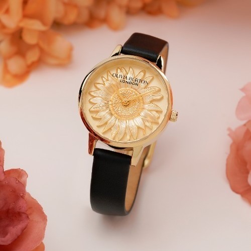 OLIVIA BURTON|3D FLOWER フラワー ゴールド ブラックレザー