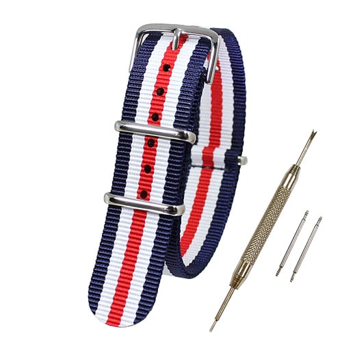 【送料無料 ネコポス便】TARO\'S NATOタイプ時計バンド 交換ベルト Nylon Watch Band ネイビー×レッド ...