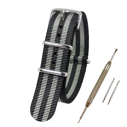 【送料無料 ネコポス便】TARO\'S NATOタイプ時計バンド 交換ベルト Nylon Watch Band ブラック3×グレー...