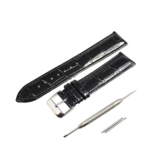 【送料無料 ネコポス便】TARO\'S 本革時計バンド ベルト 天然皮革 ブラック クロコダイル模様 【 バネ棒外し・バネ棒2本・...