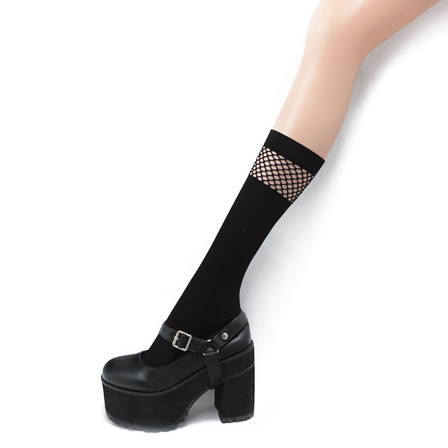 メッシュ切替ハイソックス 【BLACK】 /リッスンセレクト