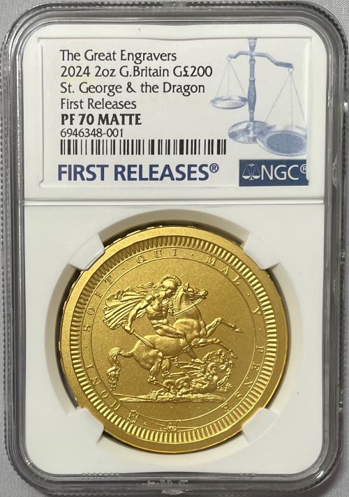 【動画あり】【ファーストリリース】グレートブリテン 2024年 チャールズ三世 セント・ジョージとドラゴン 2オンス 200ポンド...