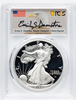 【エミリー・S・ダムストラ サイン入り】アドバンスド・リリース アメリカ 1ドル タイプ2 シルバーイーグル銀貨 2022-S年 ...