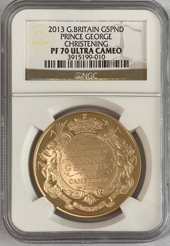 【動画あり】グレートブリテン2013年プリンスジョージ洗礼1オンス5ポンドプルーフ金貨NGC PF70UCAM