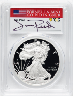 【ジム・ピード サイン入り】ファースト・デイ・オブ・イシュー アメリカ 1ドル シルバーイーグル銀貨 2020-W年 PCGS P...