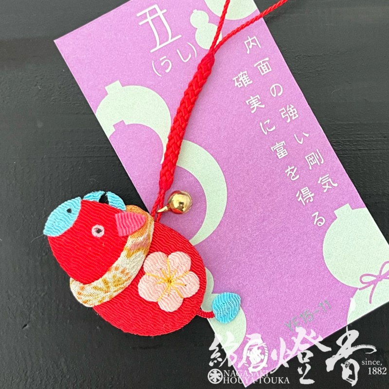 和小物/ストラップ『ちりめん雑貨【十二支根付(ねつけ)・丑(うし)-Ox-】PP袋入[鈴付き]』夢み屋