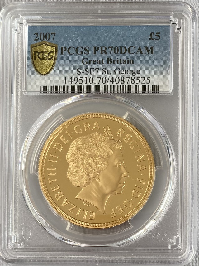 【動画あり】グレートブリテン2007年エリザベスII世5ポンドプルーフ金貨PCGS-PR70DCAM