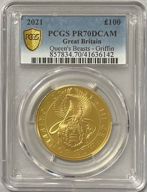 【動画あり】グレートブリテン-クイーンズビースト-エドワード3世のグリフィン2021年 100ポンド金貨 PCGS社-PR70DC...