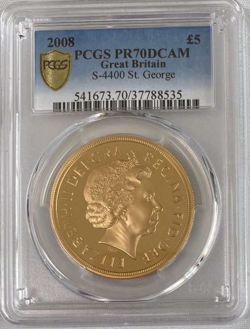 【動画あり】グレートブリテン2008年エリザベスII世5ポンドプルーフ金貨PCGS-PR70DCAM