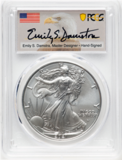 【エミリー・S・ダムストラ サイン入り】アドバンスド・リリース アメリカ 1ドル タイプ2 シルバーイーグル銀貨 2022-S年 ...