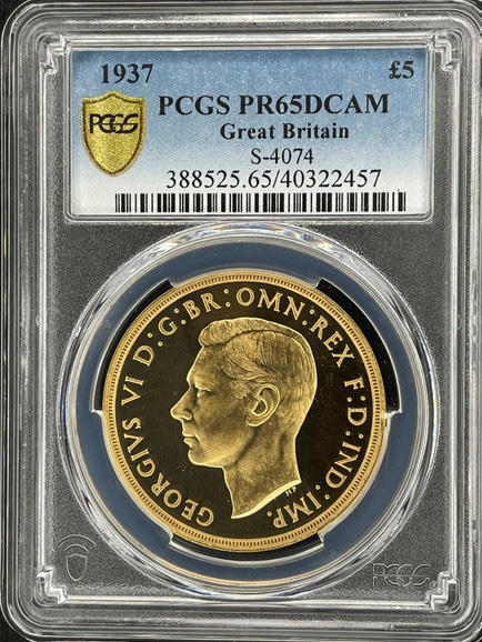 アンティークコイン グレートブリテン ジョージ6世 5ポンド プルーフ金貨 1937 PCGS PR65 DCAM
