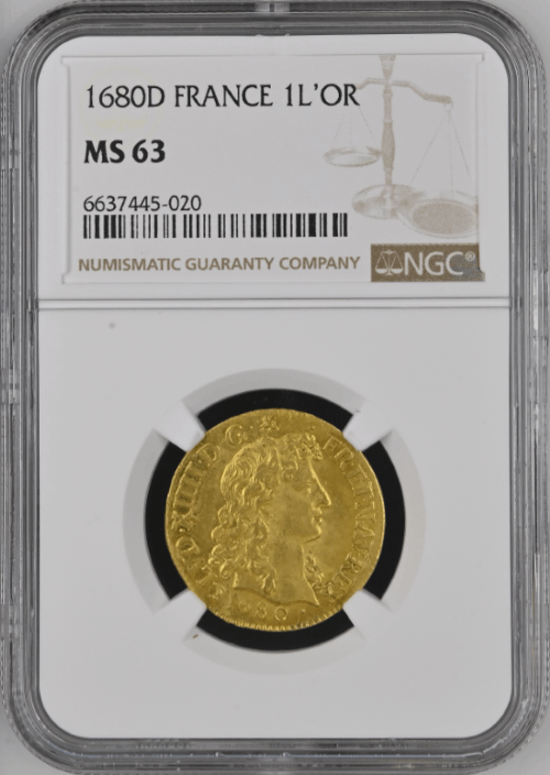 【動画あり】【レア度2-R2】フランス 1680-D年 ルイ14世 1ルイドール金貨 NGC-MS63