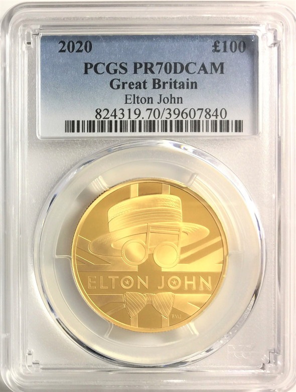 【動画あり】グレートブリテン 2020年 音楽の伝説シリーズ エルトンジョン 1オンス 100ポンド プルーフ金貨 PCGS-PR...