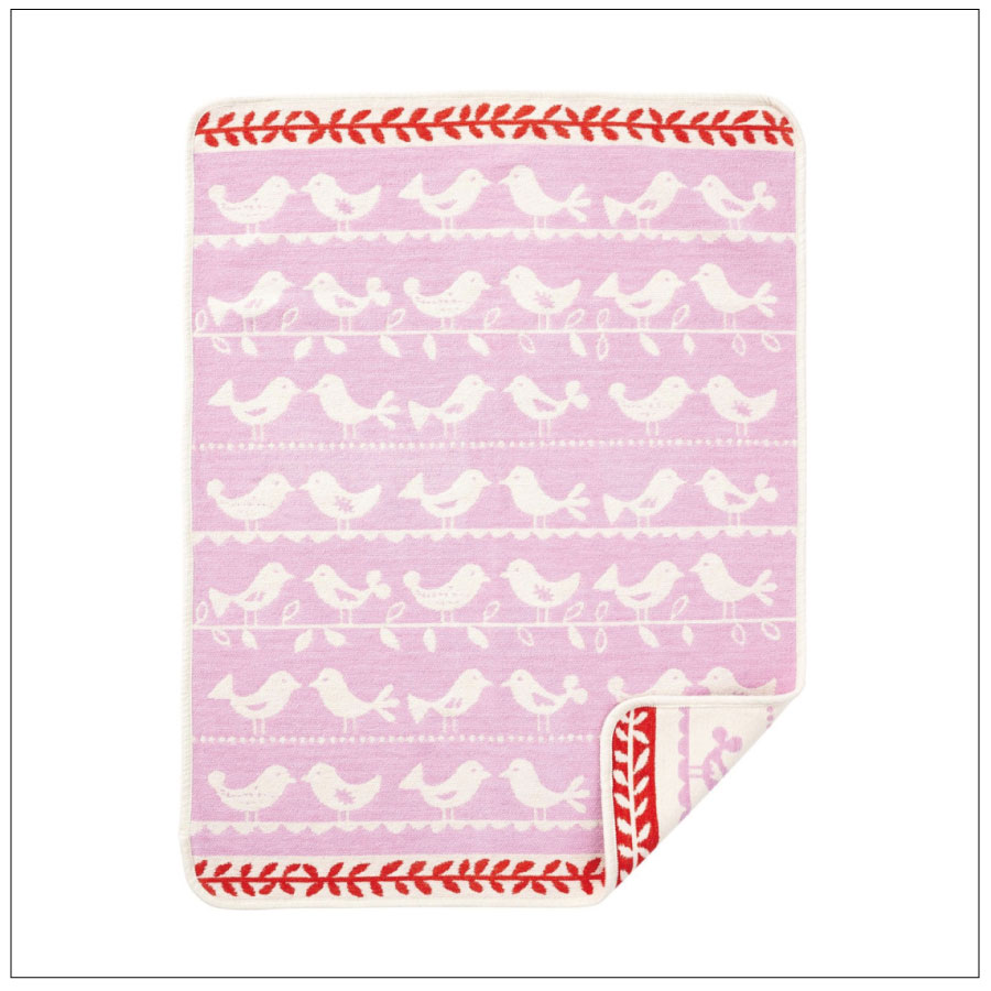 KLIPPAN クリッパン シュニールコットンミニブランケット バーズ (birds)pink