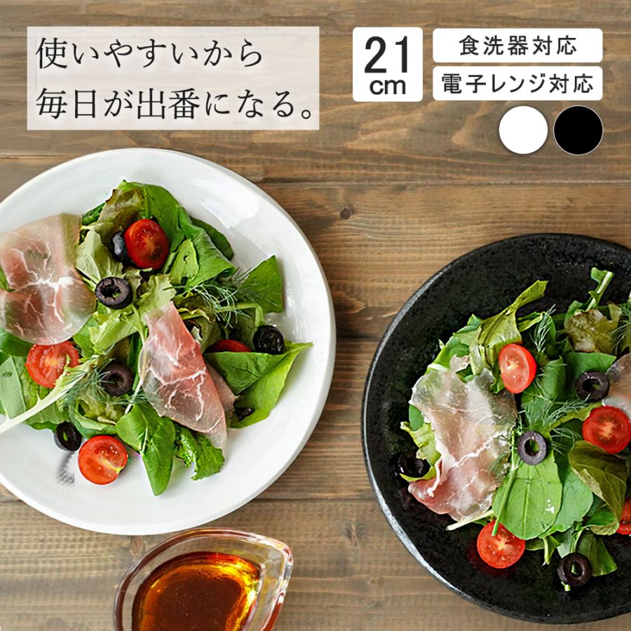 【YAMATSU STANDARD】21cm 浅皿 皿 ワンプレート カレー パスタ サラダ 丸皿 プレート 皿 白 黒 ホワイ...