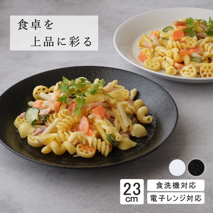 【YAMATSU STANDARD】23cm 中皿 ミート皿 ワンプレート カレー パスタ シンプル 丸皿 プレート 皿 白 黒 ...