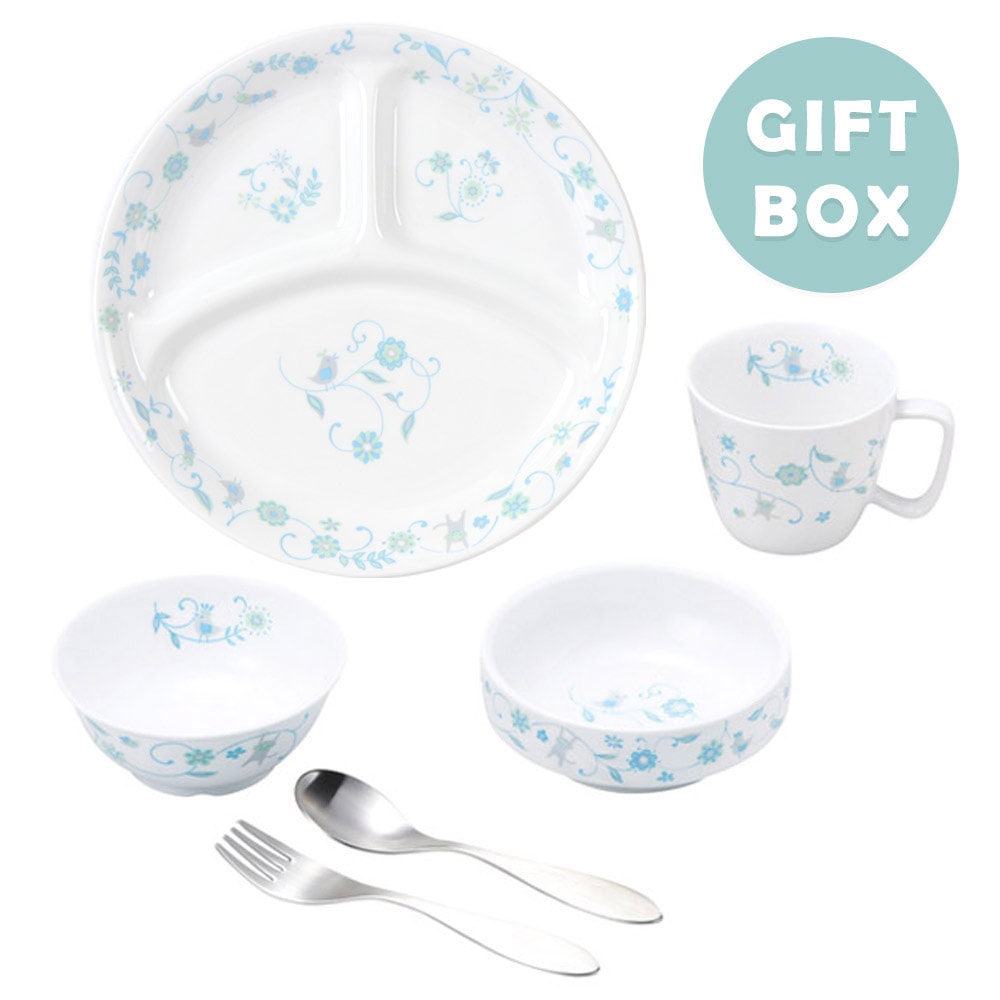 【ギフト箱】こども用食器4点&スプーンフォークセット【サラサブルー】