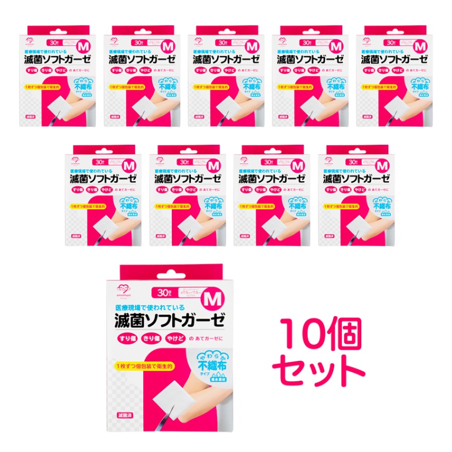 滅菌ソフトガーゼ不織布タイプ M30枚入×10個セット 滅菌済 アメジスト 大衛 医療用 すり傷 きり傷 やけど 火傷 カテーテル...