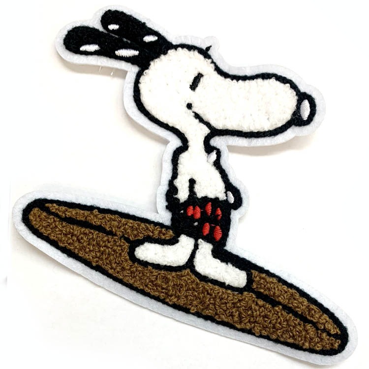 送料無料/ ワッペン スヌーピー サーフボード L 全身 刺繍 キャラクター ディズニー ワッペン アップリケ SNOOPY