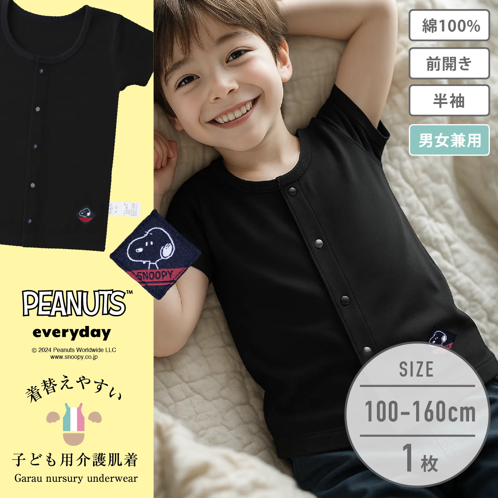 【スヌーピー】【男女兼用】着替えやすい子ども用介護肌着 前開き半袖 100~160cm【綿100%】