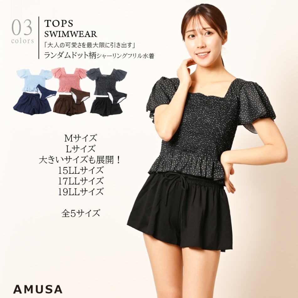 【宅配送料無料】3点セット フリル水着 ランダムドット セパレート レディース ビキニ ノンワイヤー 露出少なめ 体系カバー 大人...