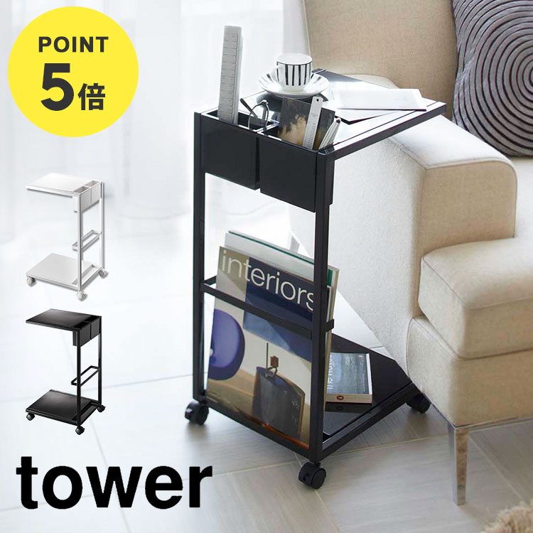 サイドテーブル キャスター おしゃれ 収納 テーブル tower タワー 山崎実業 シンプル ワゴン 机 ミニテーブル ナイトテー...