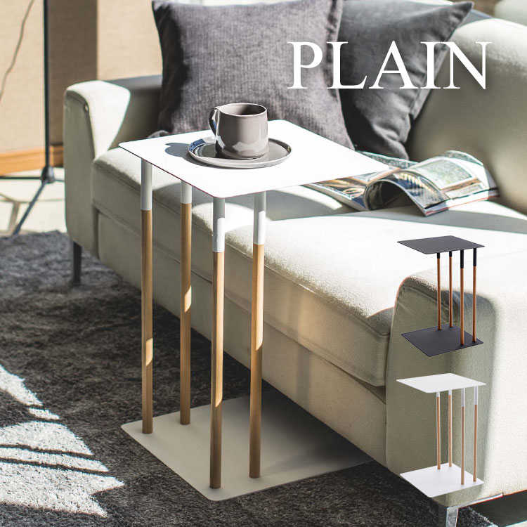 サイドテーブル おしゃれ 北欧 PLAIN プレーン 山崎実業 YAMAZAKI コの字 収納 机 テーブル 木 ベッドサイド ソ...