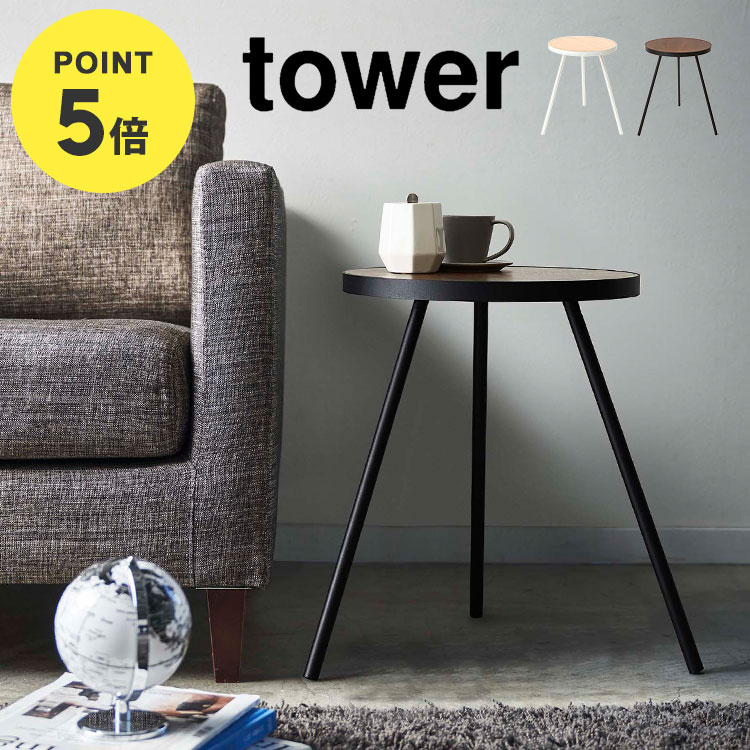 サイドテーブル タワー 丸型 サイドテーブル おしゃれ tower 山崎実業 サイドテーブル 丸 ラウンド シンプル 北欧 木 ウ...
