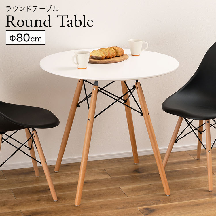 ダイニングテーブル 丸型 机 80cm カフェテーブル ラウンドテーブル 木製 天然木 ホワイト 白 おしゃれ 円形テーブル 丸テ...