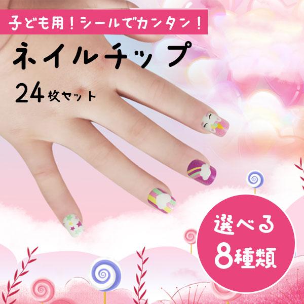 キッズ用 ネイルチップ 24枚セット 選べる20パターン シールタイプ 簡単貼るだけ キュート おしゃれ柄 可愛い柄 お子様用 小...