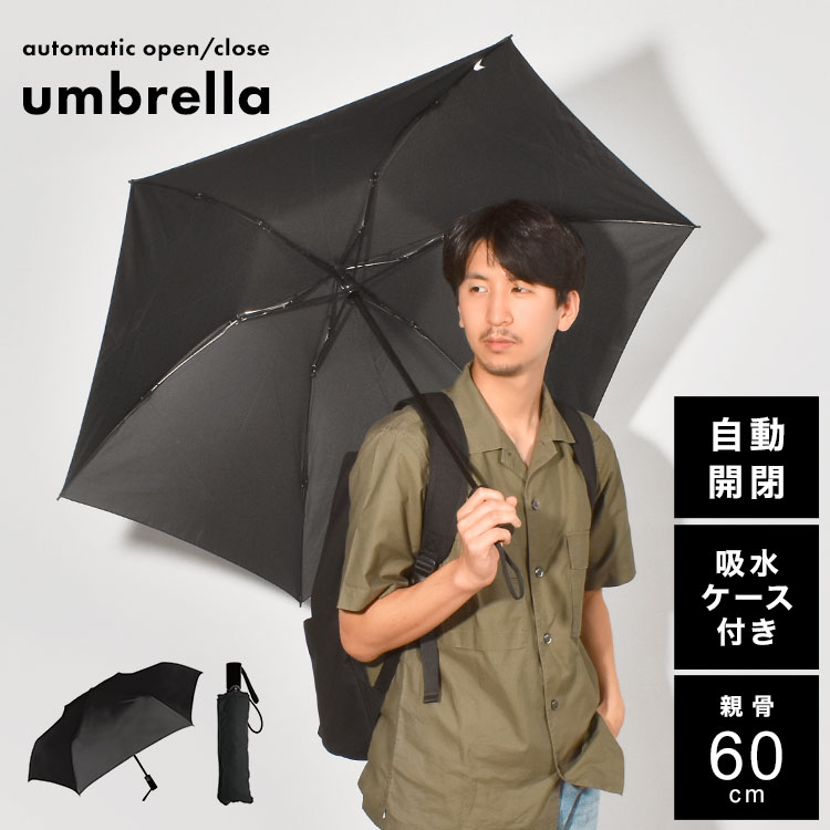 折りたたみ傘 ケース 吸水 自動開閉 逆折り 大きい 60cm メンズ コンパクト かっこいい ブラック 大きめ グラスファイバー...