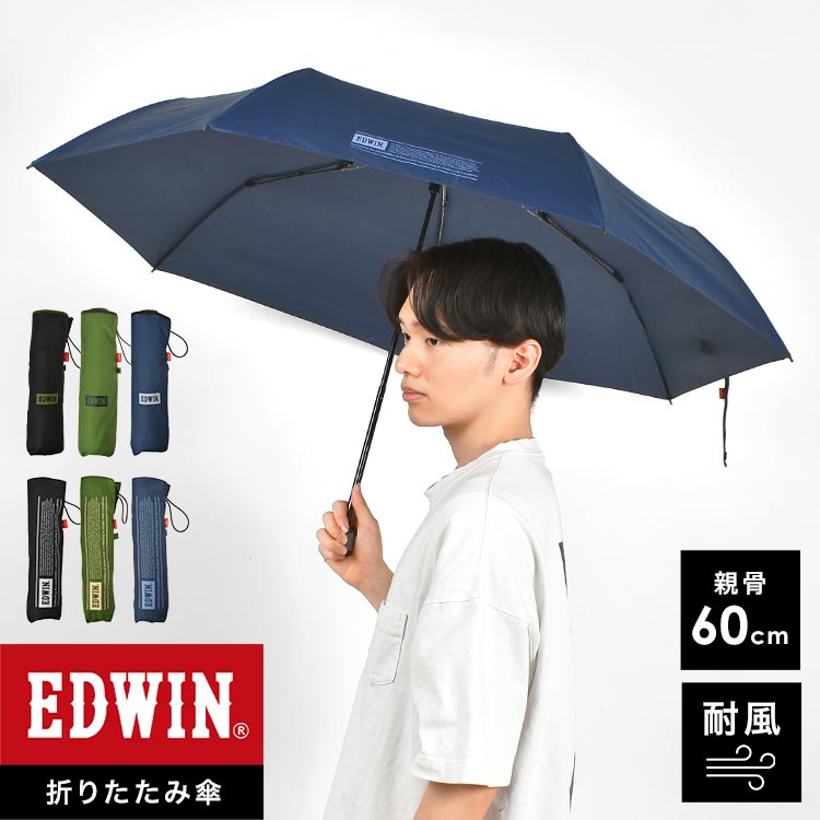 折りたたみ傘 メンズ 軽量 丈夫 EDWIN エドウィン 折り畳み傘 コンパクト 風に強い 強風に強い 傘 耐風傘 60cm 黒 ...