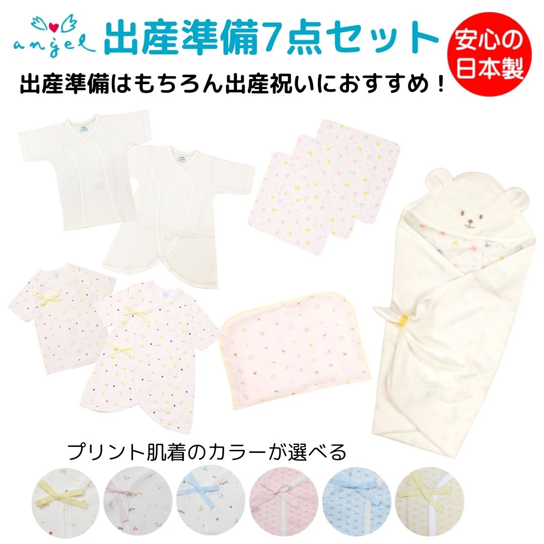 出産準備7点セット ベビー肌着 ガーゼハンカチ ベビーまくら クマさんバスアフガン セット 出産準備 出産祝い 日本製