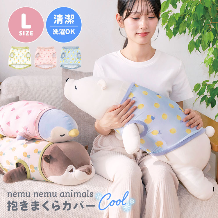 抱き枕カバー ひんやり ねむねむアニマルズ L カバー 接触冷感 ぬいぐるみ 服 だきまくら 洋服 かわいい イエロー ピンク ブ...