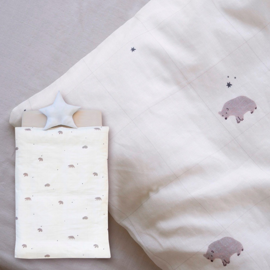 sandesica(サンデシカ)「 ほっと安心お布団セット 8点セット【スリーピーベア/枕:スモークベージュ】ミニサイズ」 ベビ...