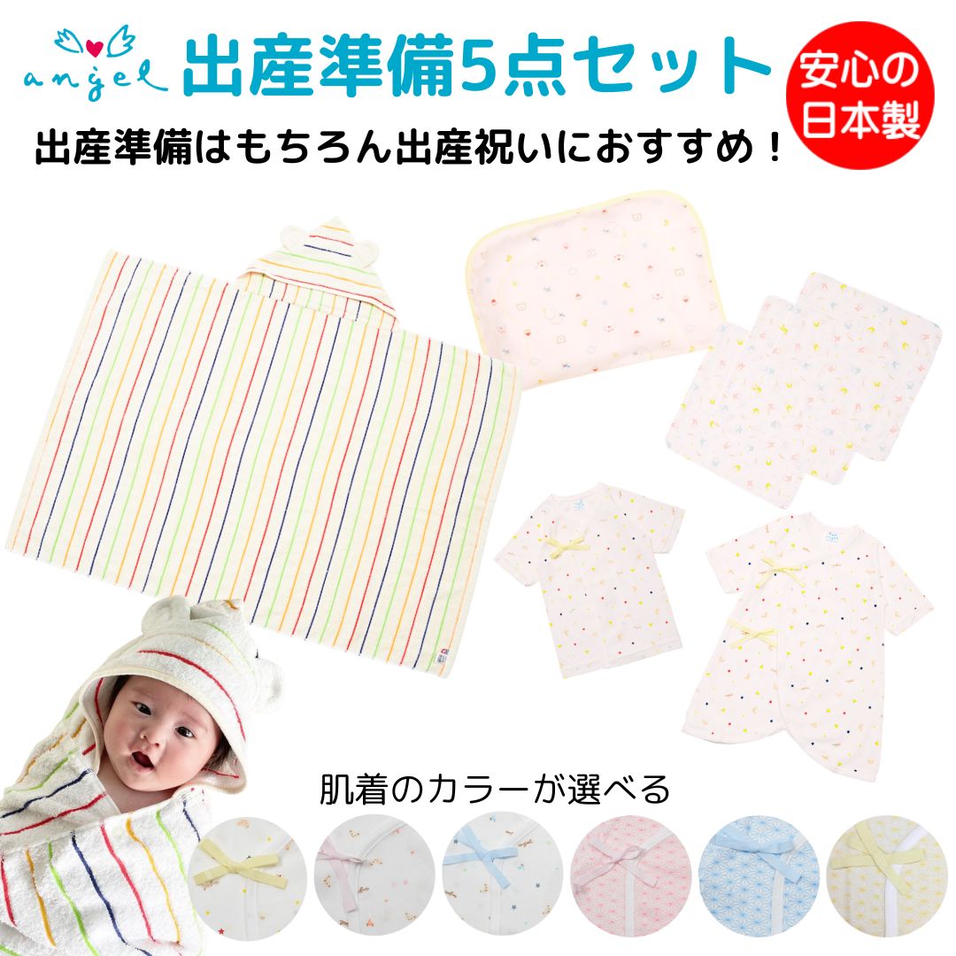 出産準備5点セット ベビー肌着 ガーゼハンカチ ベビーまくら フード付バスタオル セット 出産準備 出産祝い 日本製