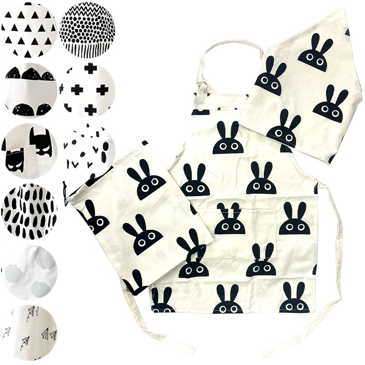 送料無料/ 子供 エプロン 三角巾 袋 キッズ コットン バンダナ ポーチ 北欧風 男の子 女の子 子ども エプロン 北欧柄 親子...