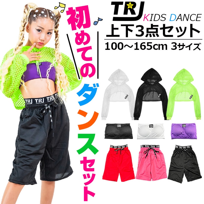 3~5日で発送予定 ダンスデビュー応援セット 上下3点セット チューブトップとメッシュパーカーとハーフパンツ ロゴ ダンスパンツ ...
