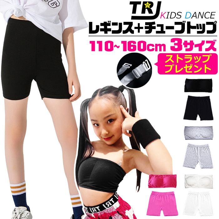 正午まで当日発送 送料無料 キッズ ダンスインナー2点セット 子供向け 一分丈レギンスとチューブトップ 子供服 ジュニア 女の子 ...