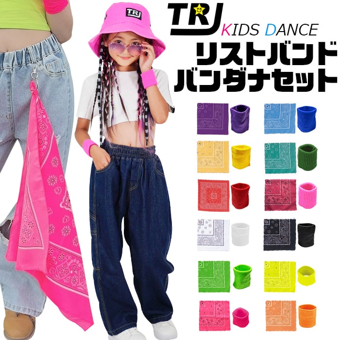 正午まで当日発送(土日祝除く)ダンスコーデ 2種セット バンダナ+リストバンド ペイズリー 女の子 小物 キッズ ジュニア 子供用...