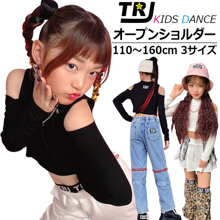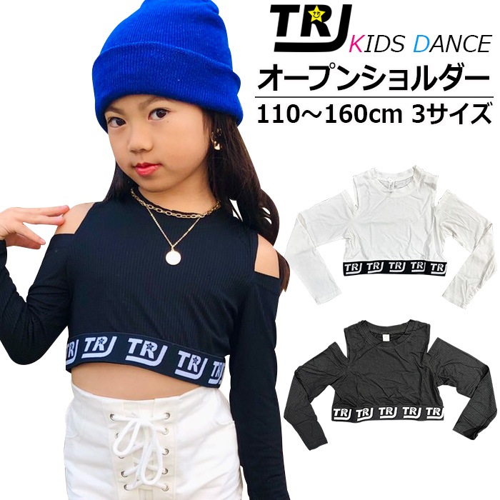 取寄せ/3-5日で発送予定(土日祝省く)ショート丈 オープンショルダー トップス 長袖 肩出し 女の子 子供服 キッズ へそ出し ...
